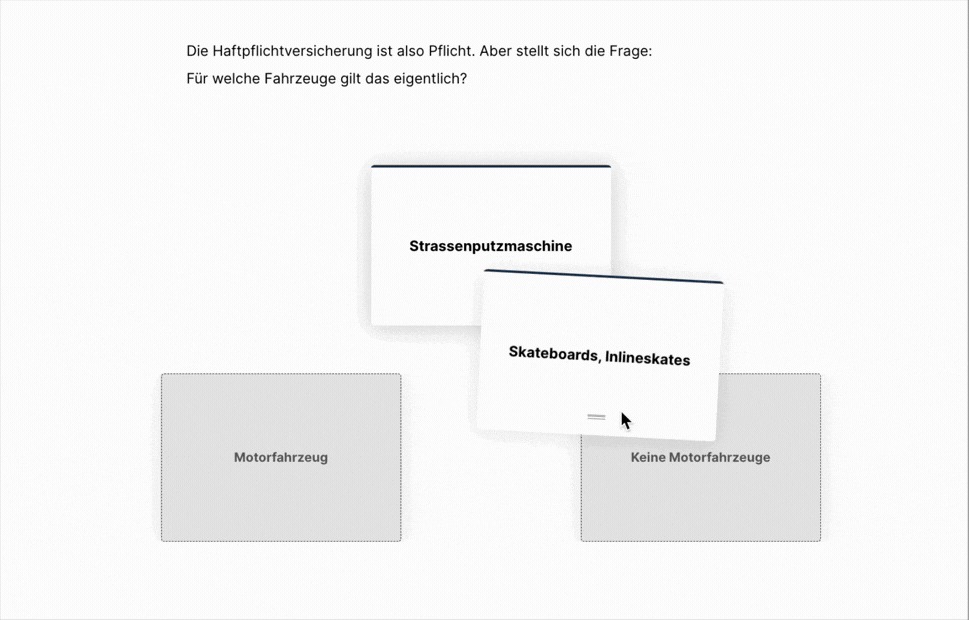 Direkt danach folgen Quizfragen, die den Bogen von der Szene zur Theorie schlägt. Das E-Learning arbeitet mit kurzen Lerneinheiten, klar strukturiert und interaktiv. So wird selbst komplexes Recht greifbar.
